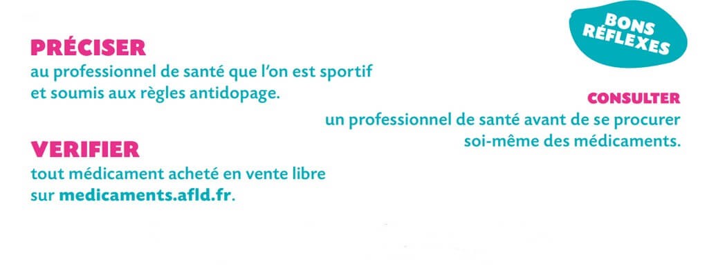L’AFLD (Agence Française de lutte contre le dopage) propose sur son site un moteur de recherche (ici) pour aider et conseiller les sportifs sur la compatibilité des médicaments avec la pratique du sport de compétition.